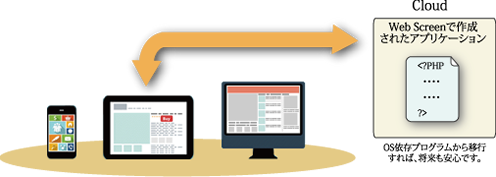 また、Web Screenで作成して頂いたアプリケーションはOSに依存しませんので、OSのサポート切れの影響を受けることはありません。